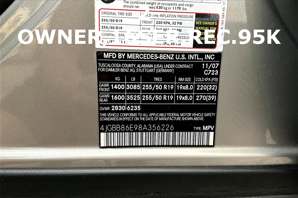 VIN: 4JGBB86E98A356226 | Stock #: 356226A | Mileage: 95,794
