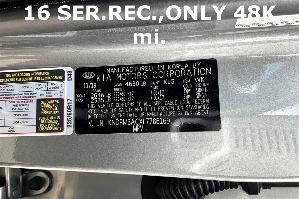 VIN: KNDPM3ACXL7786169 | Stock #: 786169P | Mileage: 48,749