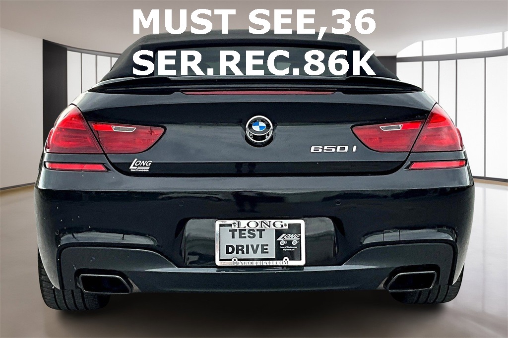 Mercedes-Benz at Long of Chattanooga is proud to present you with another True Market Priced Pre-Owned Vehicle. This 2014 BMW 6 Series 650i is loaded with the following Factory Options:12 Speakers 19" x 8.5" Star-Spoke (Style 367) Wheels 20" x 8.5" Fr & 20" x 9.0" Rr (Style 373M) Wheels 3-Spoke Leather-Wrapped M Sport Steering Wheel 4-Wheel Disc Brakes ABS brakes Active Blind Spot Detection Active Driving Assistant Adaptive Full LED Headlights Aerodynamic Kit Air Conditioning Alloy wheels AM/FM radio: SiriusXM Anti-whiplash front head restraints Auto tilt-away steering wheel Auto-dimming door mirrors Auto-dimming Rear-View mirror Automatic High Beams Automatic temperature control Bang & Olufsen Sound System Brake assist Bumpers: body-color CD player Ceramic Control Surrounds Contrast Stitching Convertible roof lining Convertible roof wind blocker Delay-off headlights Driver door bin Driver vanity mirror Dual front impact airbags Dual front side impact airbags DVD-Audio Dynamic Digital Instrument Cluster Electronic Stability Control Emergency communication system: BMW Assist eCall Enhanced USB & Bluetooth (DISC) Exterior Parking Camera Rear Fineline Oak Wood Interior Trim Four wheel independent suspension Front anti-roll bar Front Bucket Seats Front Center Armrest Front dual zone A/C Front fog lights Front reading lights Front Ventilated Seats Fully automatic headlights Garage door transmitter Genuine wood console insert Genuine wood dashboard insert Genuine wood door panel insert Glass rear window Head restraints memory Head-Up Display (HUD) Headlight cleaning Heated door mirrors Heated front seats Heated Power Front Multi-Contour Bucket Seats High intensity discharge headlights: Bi-xenon Illuminated entry Increased Top Speed Limiter Instrument Panel w/Leather Finish Integrated roll-over protection Knee airbag Leather Shift Knob Leather steering wheel LED Fog Lights Low tire pressure warning Memory seat Nappa Leather Upholstery Navigation System Occupant sensing airbag Outside temperature display Panic alarm Passenger door bin Passenger vanity mirror Power adjustable front head restraints Power convertible roof Power door mirrors Power driver seat Power passenger seat Power steering Power windows Radio data system Radio: AM/FM/HD Stereo CD/MP3 Player Rain sensing wipers Rear anti-roll bar Rear seat center armrest Rear window defroster Remote keyless entry Security system Shadowline Exterior Trim Side & Top View Cameras Soft-Close Automatic Doors Speed control Speed Limit Info Technology Speed-sensing steering Speed-Sensitive Wipers Sport steering wheel Steering wheel memory Steering wheel mounted audio controls Tachometer Telescoping steering wheel Tilt steering wheel Traction control Trip computer Variably intermittent wipers and Without Lines Designation Outside.