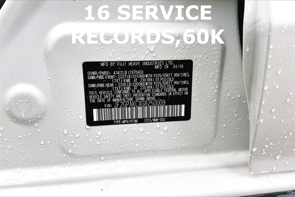 VIN: JF2GPAKCXG8250009 | Stock #: 250009A | Mileage: 60,714