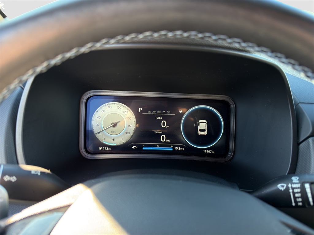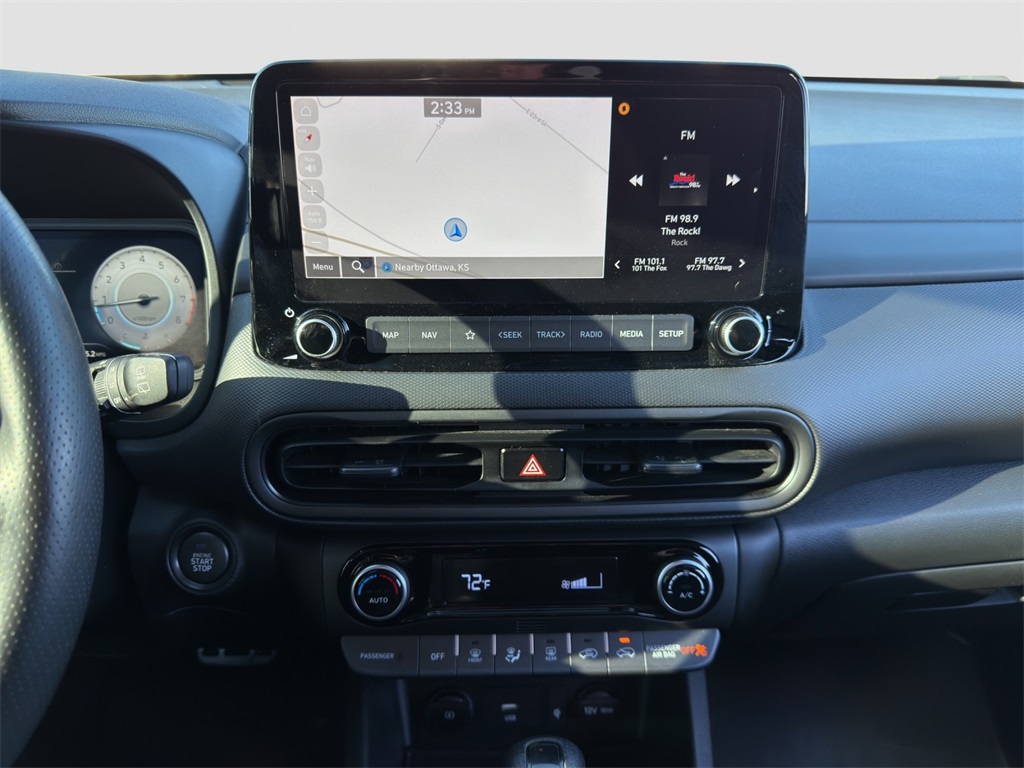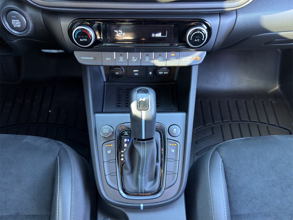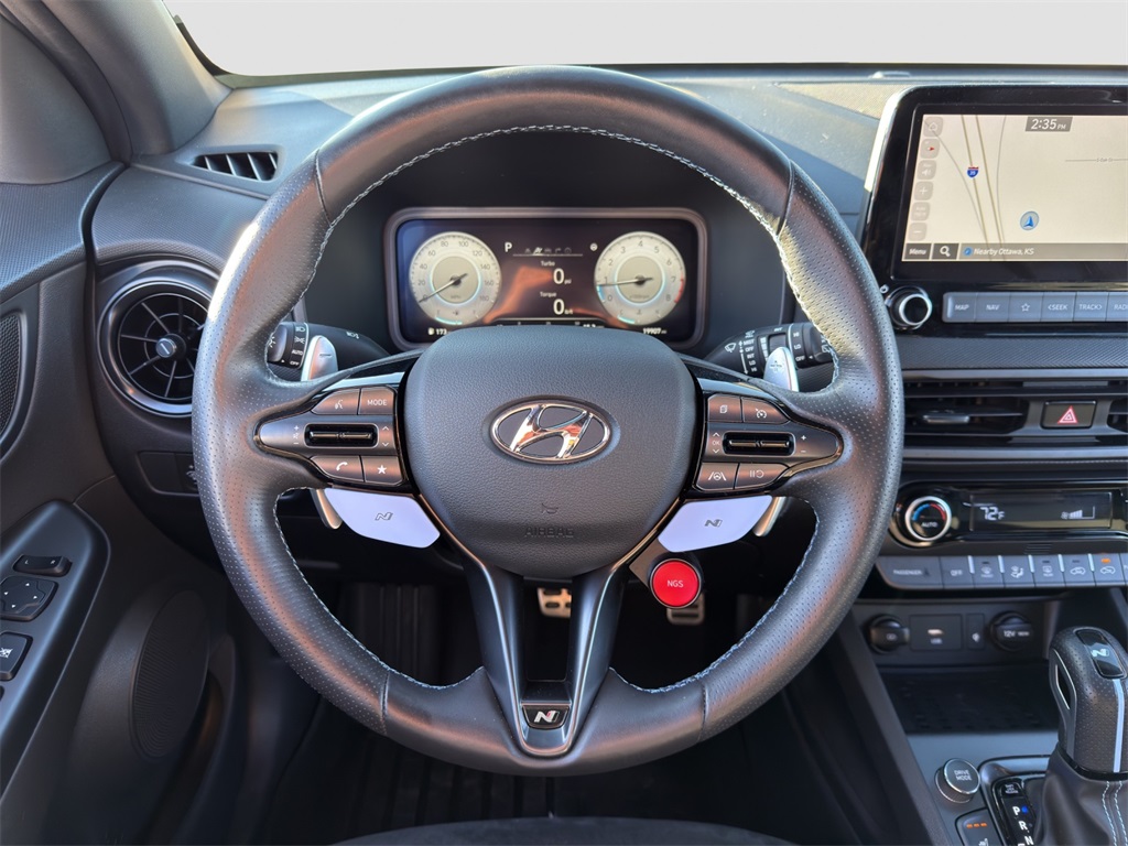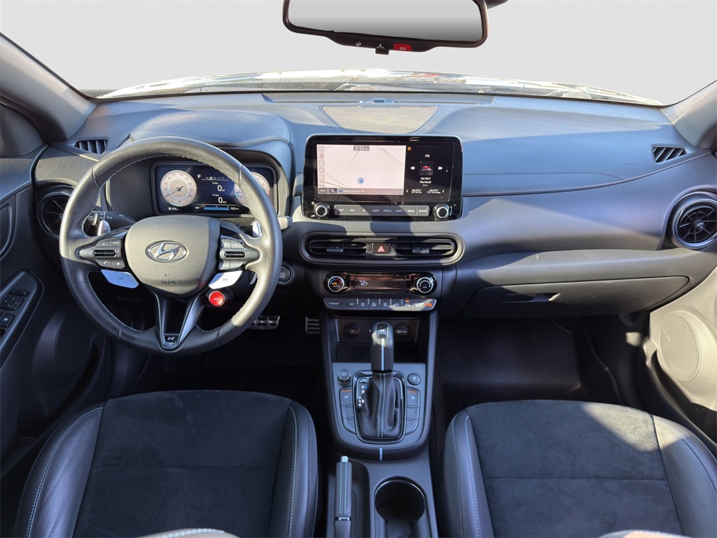 Our Kona N cockpit caters to enthusiasts with bolstered leather/suede front sport seats a leather-wrapped steering wheel a 10.25-inch driver display metal scuff plates N alloy pedals automatic temperature control keyless access/ignition and remote start. You're on the road to better connectivity with a 10.25-inch touchscreen full-color navigation Android Auto/Apple CarPlay Bluetooth wireless charging voice recognition and Harman Kardon audio.