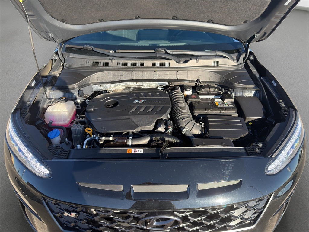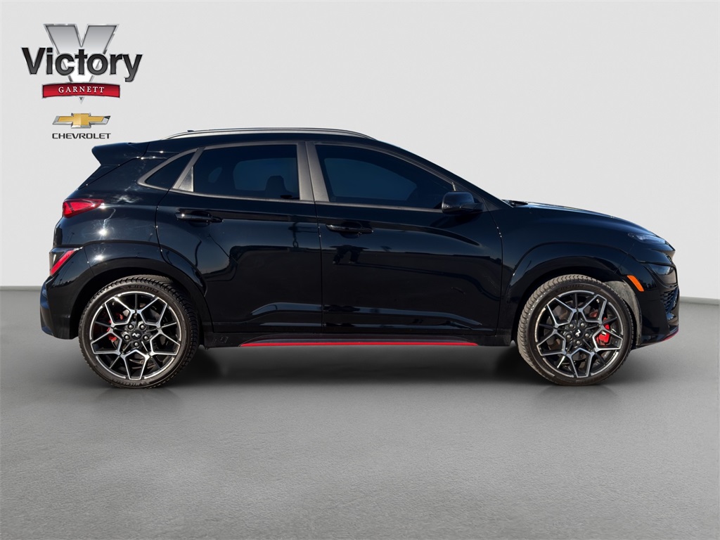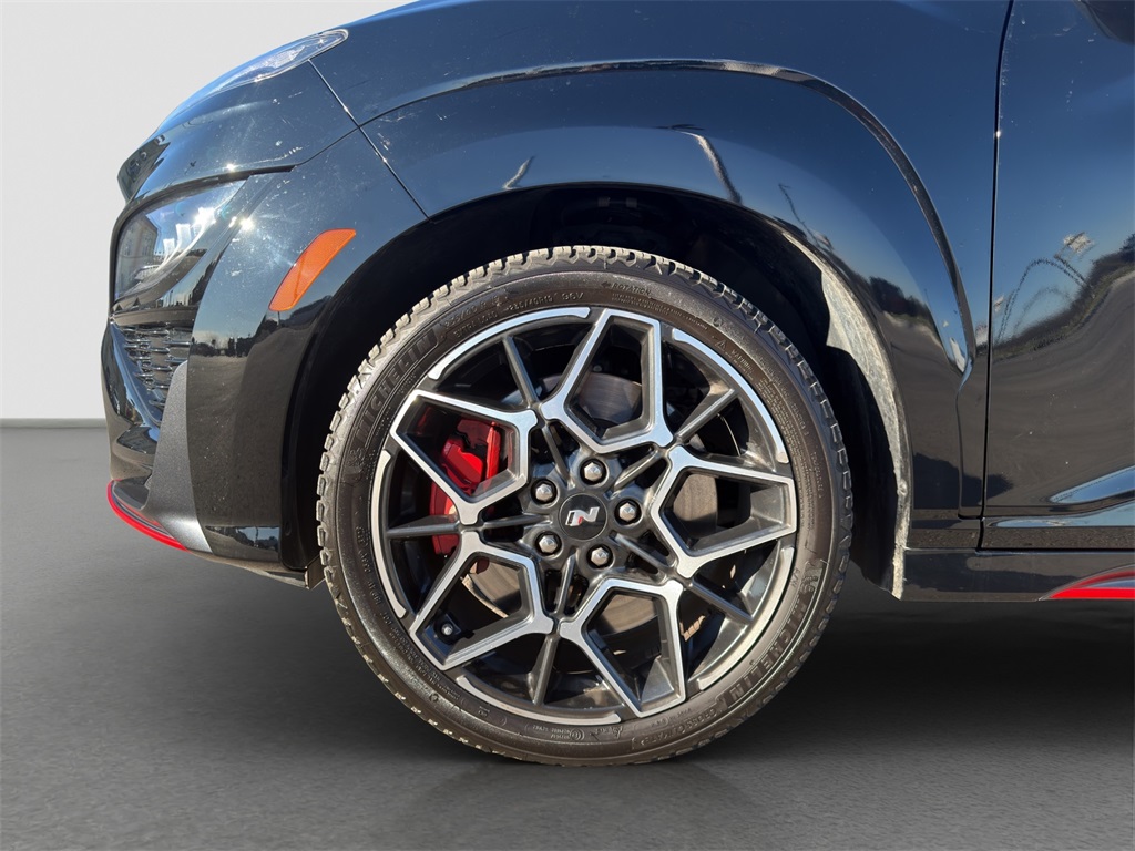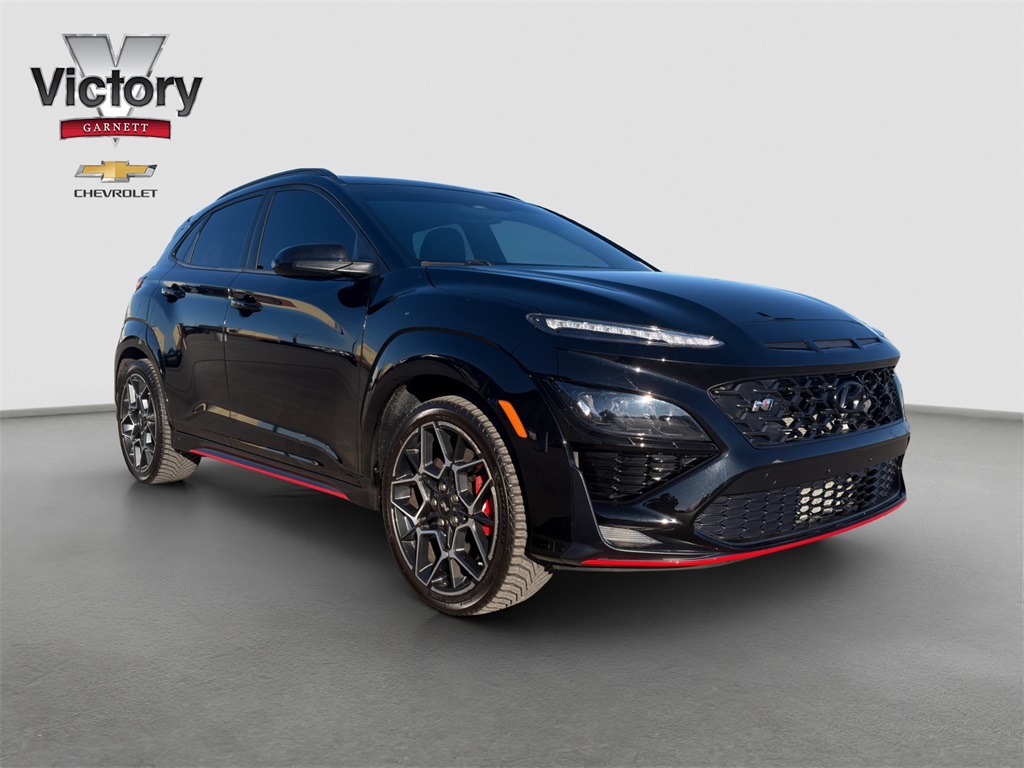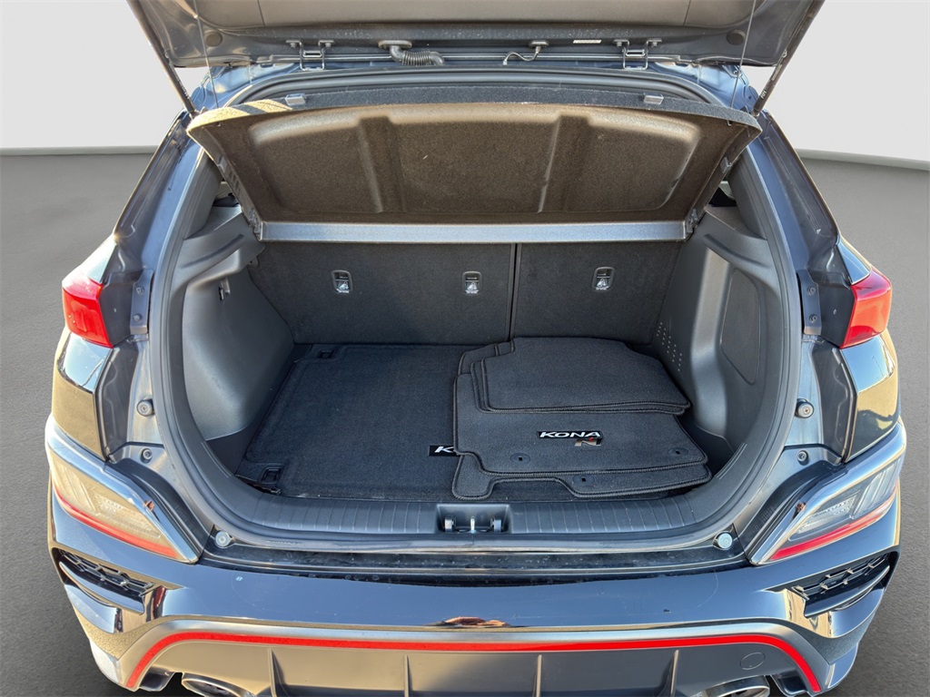 Tested on the track our One Owner No Accidents Reported 2023 Hyundai Kona N rewards you with a rush of adrenaline and a bold Abyss Black Pearl appearance! Motivated by a TurboCharged 2.0 Liter 4 Cylinder generating 276hp for a paddle-shifted 8 Speed Dual-Clutch Automatic transmission with launch control. This Front Wheel Drive SUV also has sure-footed dynamics with an electronically controlled N suspension and it scores nearly 27mpg on the highway. Whether you're carving the corners or camping out our Kona N is anything but dull with LED lighting gloss-black heated mirrors dual-tipped exhaust sport bumpers 19-inch N Design alloy wheels and aggressive side sills with a wing-type rear spoiler.