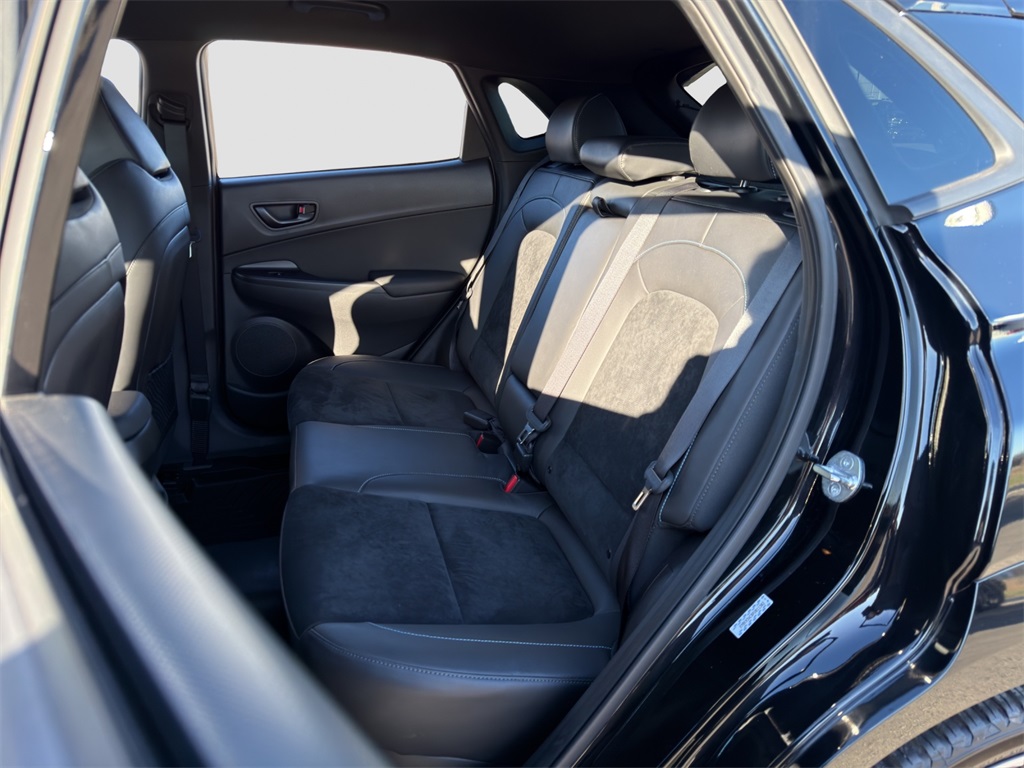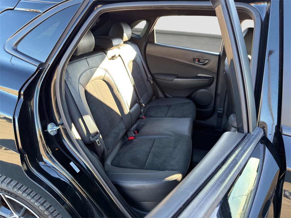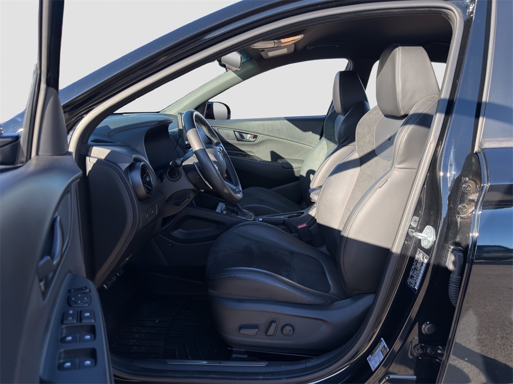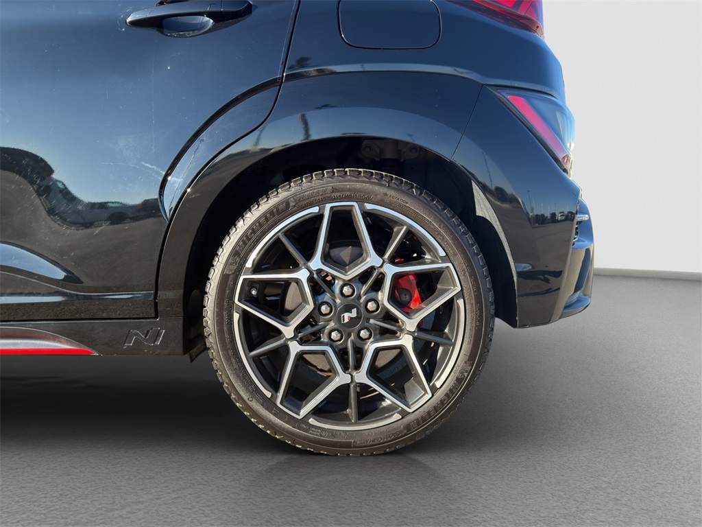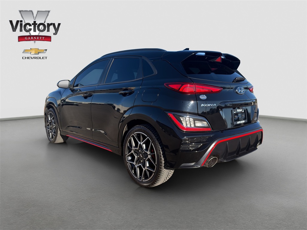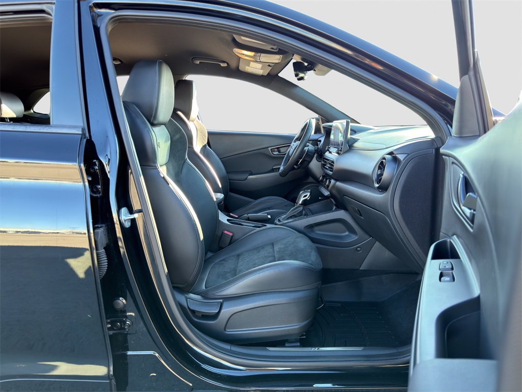 Tested on the track our One Owner No Accidents Reported 2023 Hyundai Kona N rewards you with a rush of adrenaline and a bold Abyss Black Pearl appearance! Motivated by a TurboCharged 2.0 Liter 4 Cylinder generating 276hp for a paddle-shifted 8 Speed Dual-Clutch Automatic transmission with launch control. This Front Wheel Drive SUV also has sure-footed dynamics with an electronically controlled N suspension and it scores nearly 27mpg on the highway. Whether you're carving the corners or camping out our Kona N is anything but dull with LED lighting gloss-black heated mirrors dual-tipped exhaust sport bumpers 19-inch N Design alloy wheels and aggressive side sills with a wing-type rear spoiler.