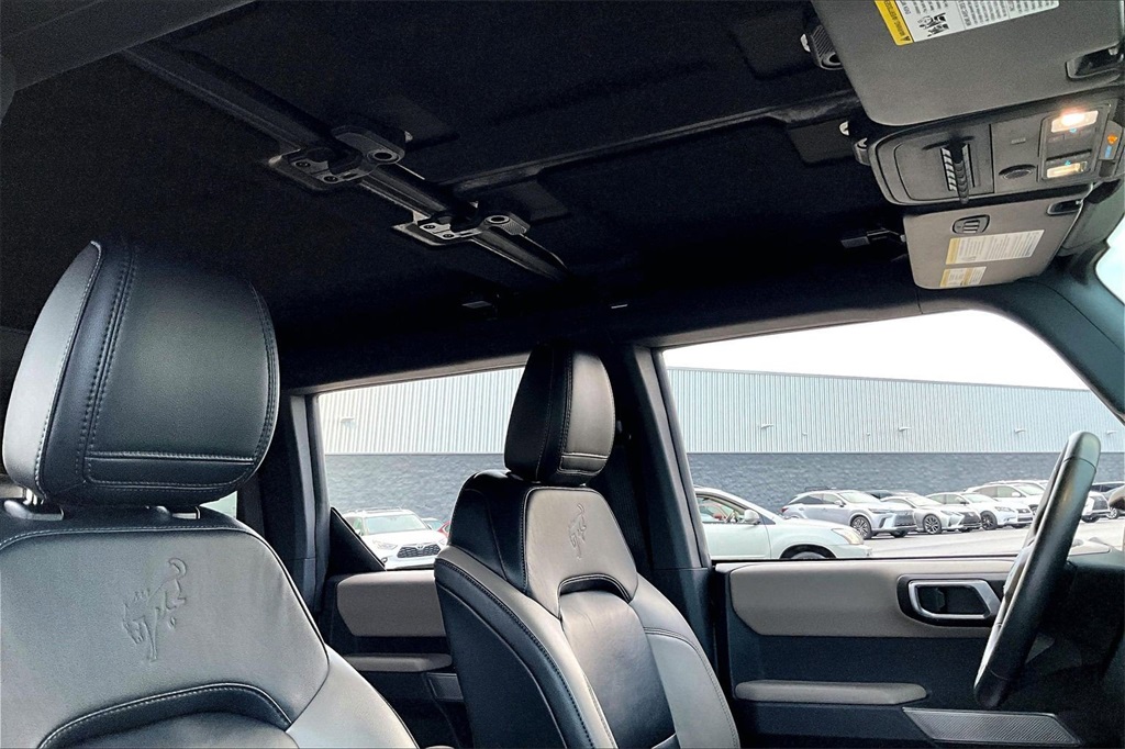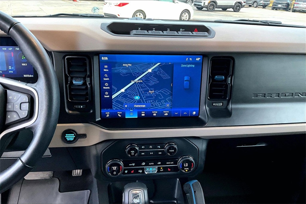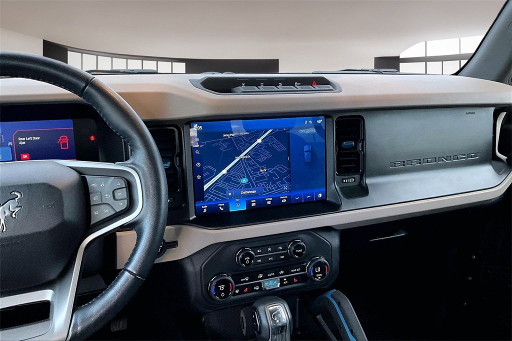 Mercedes-Benz at Long of Chattanooga is proud to present you with another True Market Priced Pre-Owned Vehicle. This 2023 Ford Bronco is loaded with the following Factory Options:4-Wheel Disc Brakes 7 Speakers ABS brakes Air Conditioning AM/FM radio: SiriusXM with 360L AM/FM Stereo Auto High-beam Headlights Brake assist Brush Guard Carbonized Gray Molded-In-Color Hard Top Compass Delay-off headlights Driver door bin Driver vanity mirror Dual front impact airbags Dual front side impact airbags Electronic Stability Control Emergency communication system: 911 Assist Exterior Parking Camera Rear Ford Performance Heavy-Duty Modular Front Bumper Front anti-roll bar Front Bucket Seats Front Center Armrest Front reading lights Front Row Top Panels Storage Bag Front wheel independent suspension Fully automatic headlights Hard Top Sound Deadening Headliner Heated door mirrors Illuminated entry Integrated roll-over protection Keyless Entry Keypad Low tire pressure warning Occupant sensing airbag Outside temperature display Overhead airbag Overhead console Panic alarm Passenger door bin Passenger vanity mirror Power door mirrors Power steering Power windows Radio data system Rear-Window Defroster & Washer Remote keyless entry Security system SiriusXM Radio w/360L Speed control Split folding rear seat Steering wheel mounted audio controls SYNC 4 Tachometer Telescoping steering wheel Tilt steering wheel Traction control Trip computer Variably intermittent wipers and Wheels: 17" Black High Gloss-Painted Aluminum.