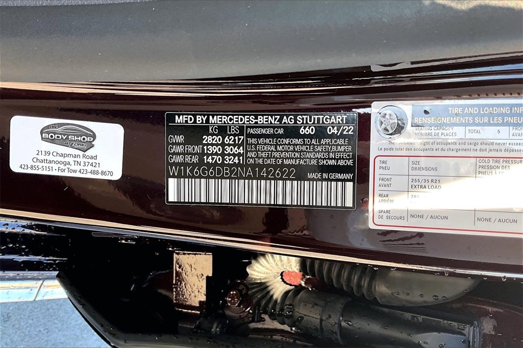 Mercedes-Benz at Long of Chattanooga is proud to present you with another True Market Priced Pre-Owned Vehicle. This 2022 Mercedes-Benz S-Class S 500 is loaded with the following Factory Options:4MATIC® Macchiato/Magma Grey Leather 15 Speakers 4-Wheel Disc Brakes ABS brakes Adaptive suspension Air Conditioning Alloy wheels AM/FM radio: SiriusXM Apple CarPlay®/Android Auto® Auto High-beam Headlights Auto tilt-away steering wheel Auto-dimming door mirrors Auto-dimming Rear-View mirror Auto-leveling suspension Automatic temperature control Brake assist Bumpers: body-color Burmester® 3D Surround Sound System "Burmester is a registered trademark of Burmester Audiosysteme GmbH Berlin Germany." Child-Seat-Sensing Airbag Compass Delay-off headlights Door auto-latch Driver door bin Driver vanity mirror Dual front impact airbags Dual front side impact airbags Electronic Stability Control Emergency communication system: eCall Emergency System Exterior Parking Camera Rear Four wheel independent suspension Front anti-roll bar Front Bucket Seats Front Center Armrest Front dual zone A/C Front reading lights Front Seats Garage door transmitter: HomeLink Genuine wood dashboard insert Genuine wood door panel insert Head restraints memory Heated door mirrors Heated front seats HVAC memory Illuminated entry Knee airbag Leather steering wheel Leather Upholstery Low tire pressure warning Memory seat Navigation System Occupant sensing airbag Outside temperature display Overhead airbag Overhead console Panic alarm Passenger door bin Passenger vanity mirror Power adjustable front head restraints Power adjustable rear head restraints Power door mirrors Power driver seat Power Front Seats w/4-Position Memory Power moonroof: Panorama Power passenger seat Power steering Power windows Premium audio system: MBUX Radio data system Radio: MBUX w/Navigation Rain sensing wipers Rear anti-roll bar Rear fog lights Rear reading lights Rear seat center armrest Rear side impact airbag Rear Window Blind Rear window defroster Remote keyless entry Security system SiriusXM Radio Speed control Speed-sensing steering Speed-Sensitive Wipers Steering wheel memory Steering wheel mounted audio controls Tachometer Telescoping steering wheel Tilt steering wheel Traction control Trip computer Turn signal indicator mirrors Variably intermittent wipers Ventilated front seats and Wheels: 19" 5-Multi Spoke.