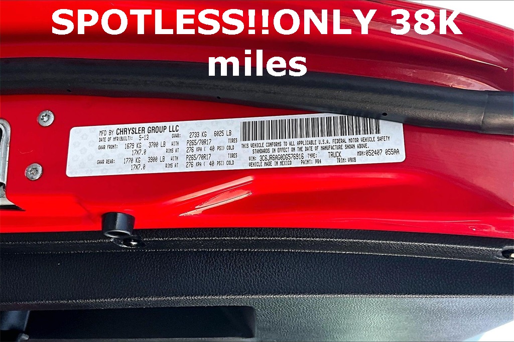 VIN: 3C6JR6AG0DG576916 | Stock #: 576916A | Mileage: 38,155